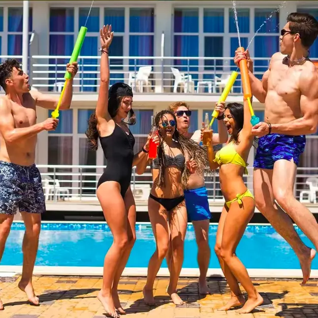 El producto es muy bueno y divertido, ideal para souvenirs de cumpleaños. Es fácil de usar para niños pequeños y ofrece una buena distancia para jugar, lo que lo hace adecuado tanto para niños como para adultos. Además, tiene un precio accesible, lo que lo convierte en una opción atractiva para eventos y juegos en la pileta.