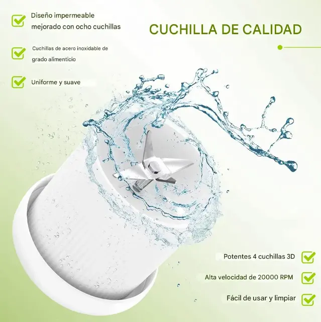✔ Motor potente de 40W con 6 cuchillas de acero inoxidable