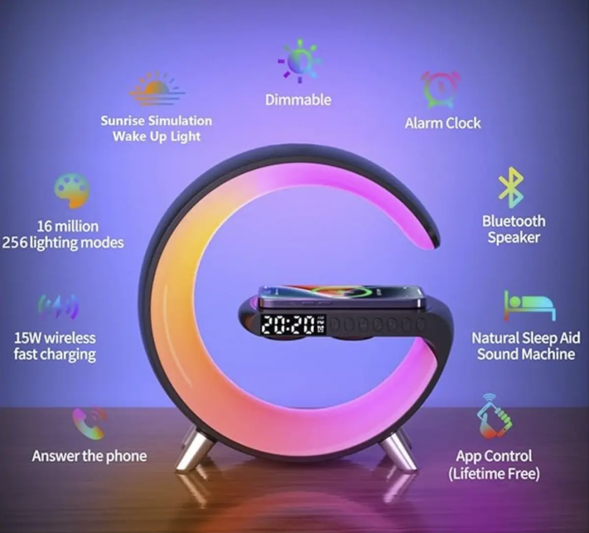 Esta asombrosa lámpara inalámbrica 3 en 1 no es solo una luz ambiental, sino también una base de carga inalámbrica rápida de 15W. También cuenta con un altavoz Bluetooth para poder escuchar música.